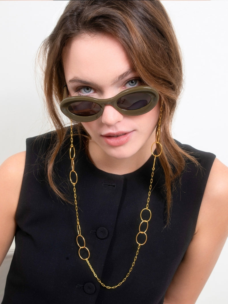 Minimalist yet radiant, Bobby is the gold glasses chain that completes any outfit. Crafted from 18K gold-plated stainless steel, it adds subtle shine without overpowering your look. Designed for women who appreciate understated elegance, Bobby is the perfect everyday essential from Sunny Cords.