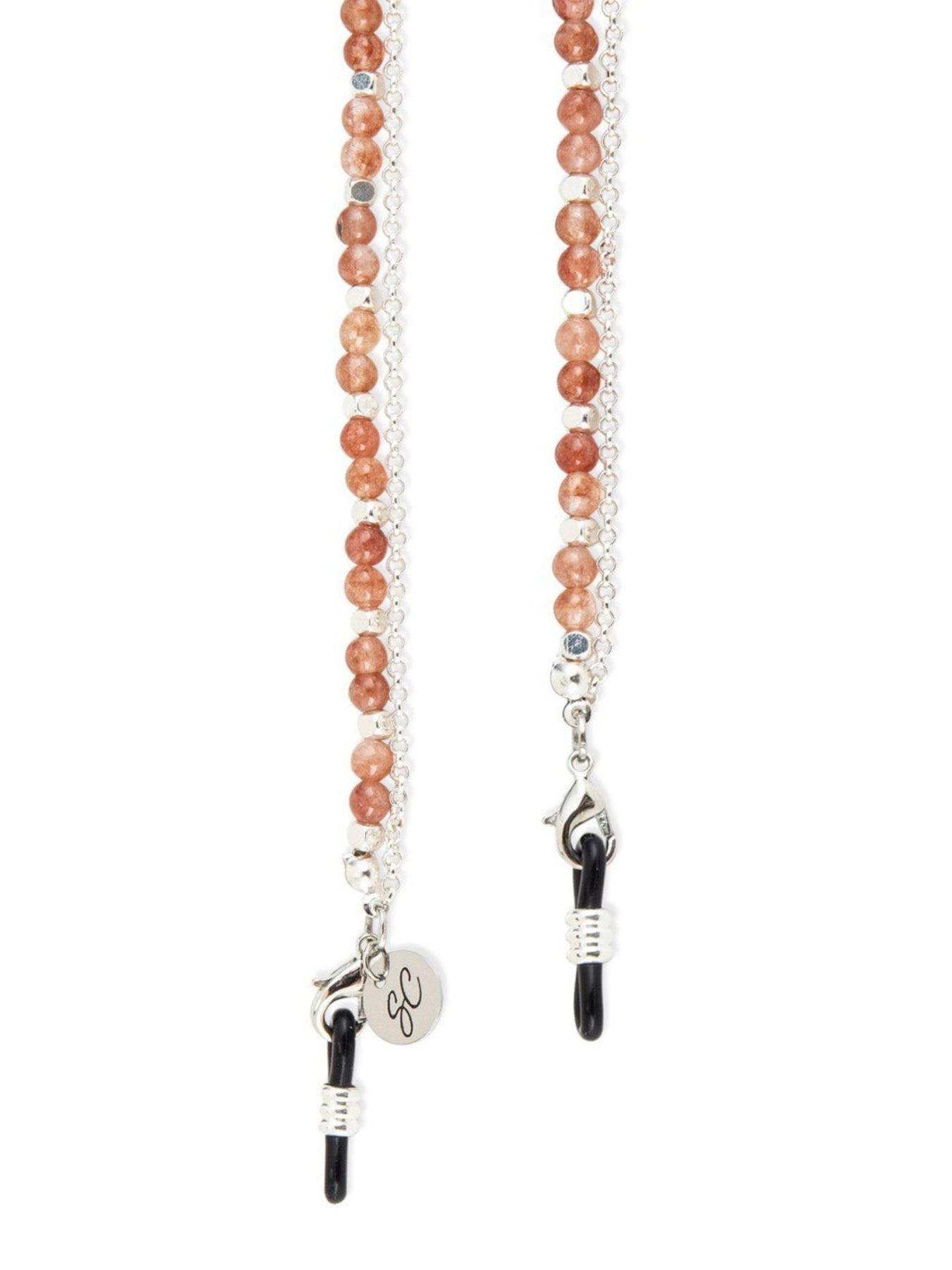 This beautiful silver urban style sunglass cord adds flair to your outfit. A silver classy chain combined with peachy beads! This sunglass chain design that will hold your sunnies right where you want them to be. Your best friend will definitely be a fan of this sunglass chain!