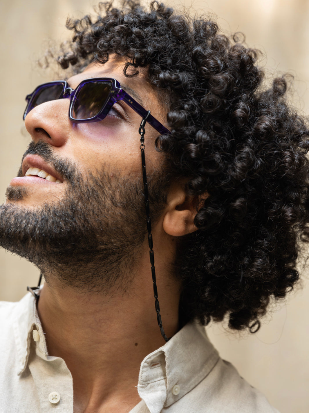 Let us introduce you to Jake, our cool and fashionable glass chain. The Sunny Cord can be fixed easily to your glasses by using the rubbers that are placed at the end of the chain. It will keep your glasses in place, so that you will never have to search for your glasses again. The Jake has metallic squared shapes with sightly rounded edges to add some finesse. The Jake is available in pitch black or gold. Which one will you choose?
