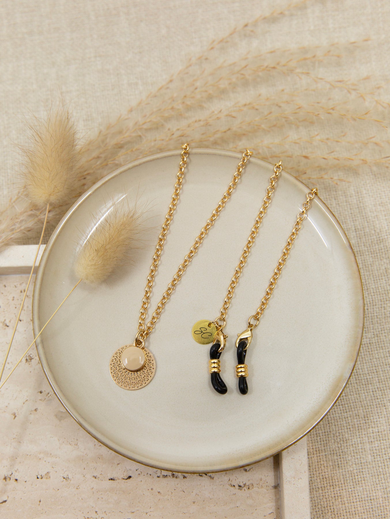 The Georgi gold sunglasses chain is for those who are effortlessly classy while having that extra dollop of charm. These lovelies feature a pretty gold chain with a circular filigree charm on the end with a beige pastel circle charm. The perfect Sunny Cord for sporting on a yacht or for a brunch!