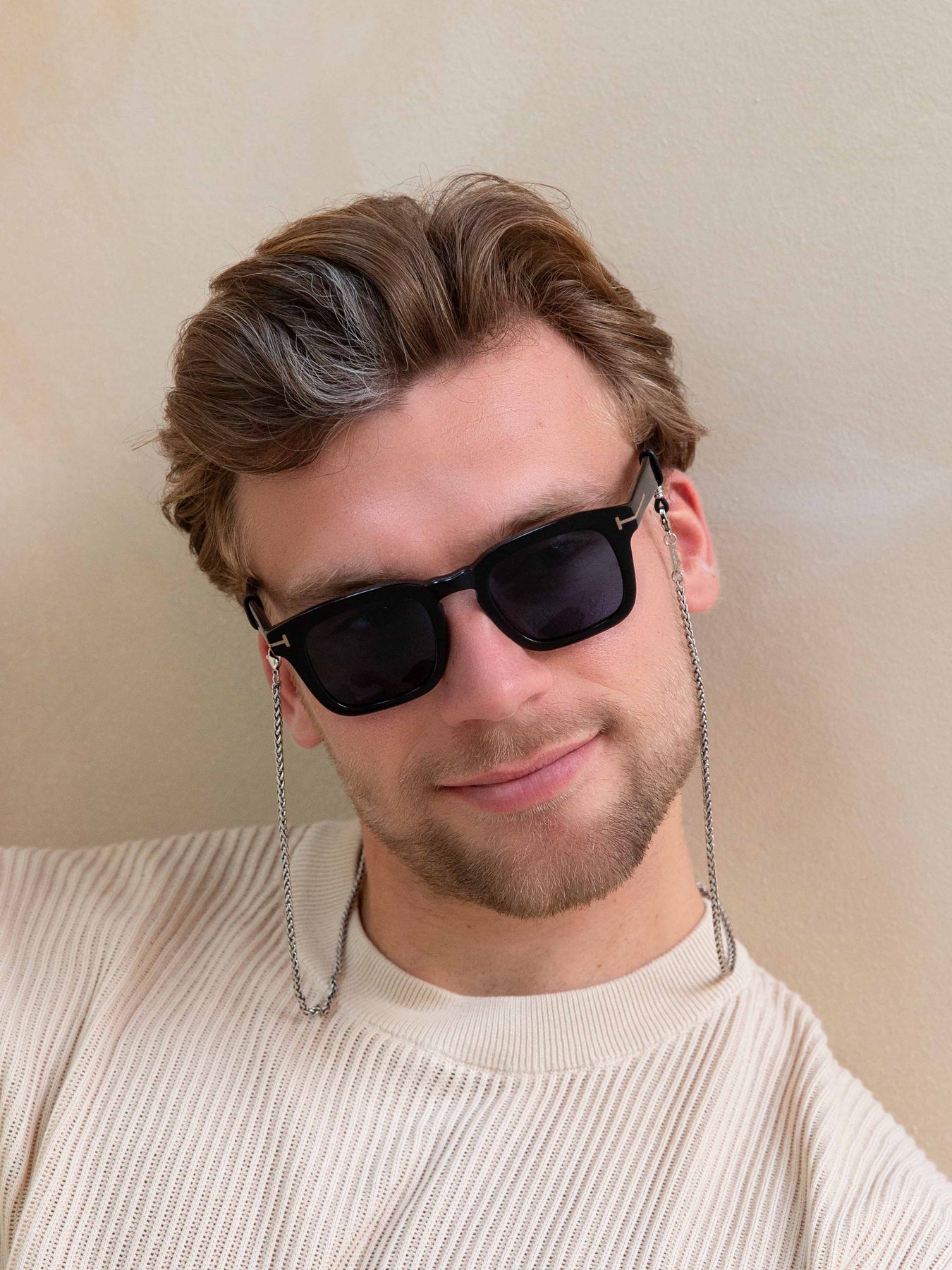 Let us introduce you to the silver glasses chain called Noah. This tough looking glass chain adds the added touch of class to your outfit. With this round laced Sunny Cord, we were inspired by the silver trend, who made a return. With this Noah glasses chain you choose for an edgy and fashionable look. Looking for something a bit more subtle? Then do not miss out on taking a closer look at the Otis glass chain.