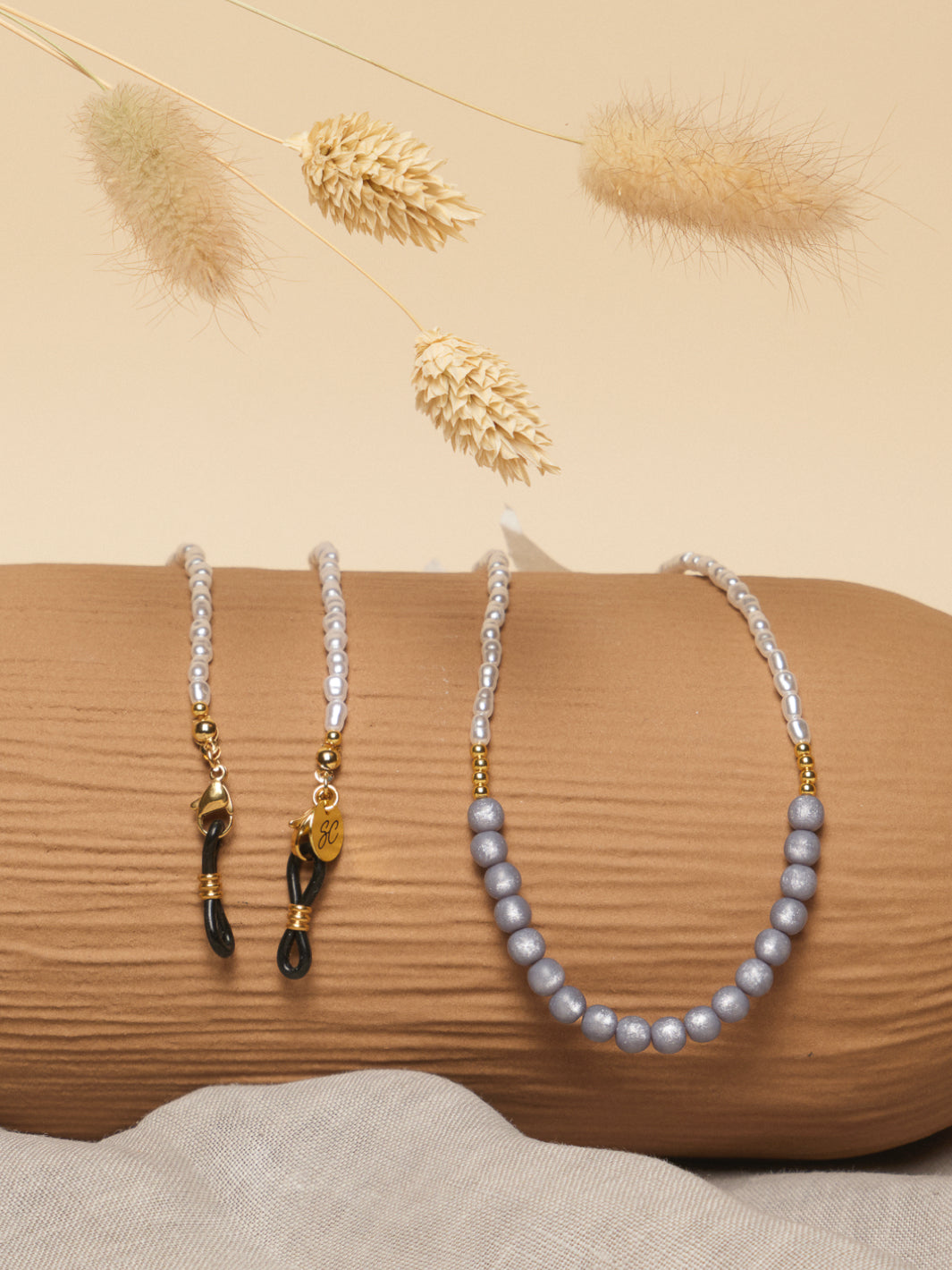 Let yourself be submerged by the beauty of the Sky glasses chain. This Sunny Cord consists of high-quality imitation pearls and super Polaris beads, which have been selected with care and precision based on their look and shine. We made this version in three colors: blushing peach, jean blue or lime yellow. Which one will be your favourite to shop?