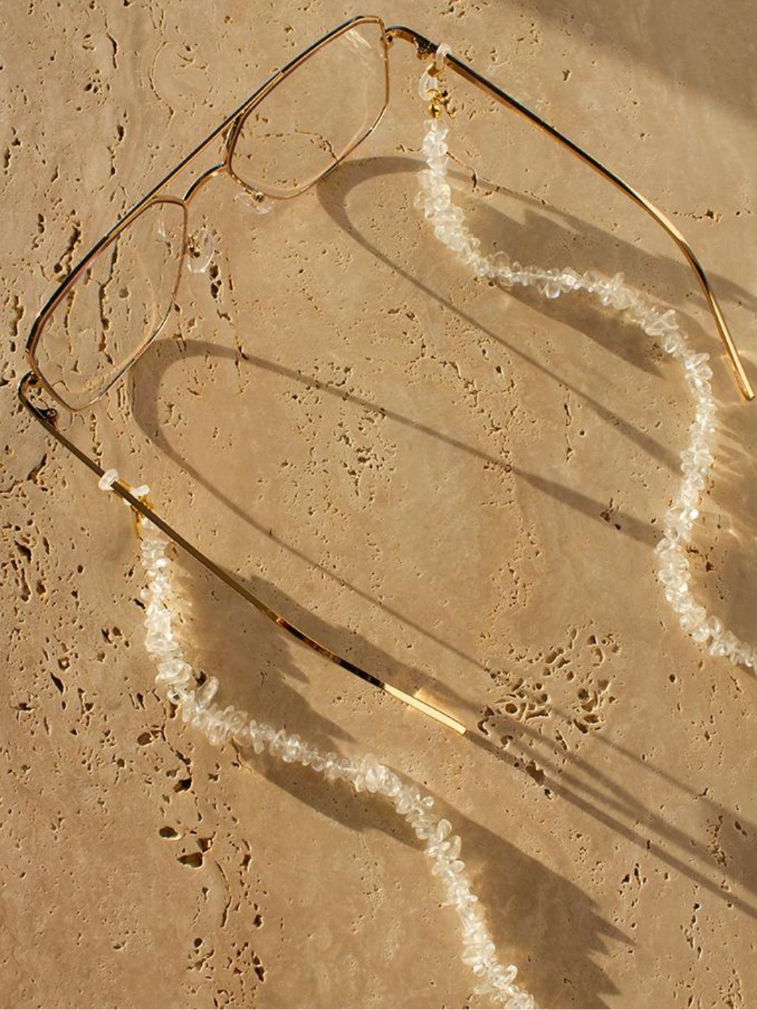 The Olaya glasses cord is made out of real transparant crystal, which is believed to have the ability to amplify energy by absorbing, storing, relating and regulating it.. Take a closer look and you can see through the crystal stones. Wear the sunny cord on your glasses with the sun reflecting on your crystals. They will sparkle as never before.