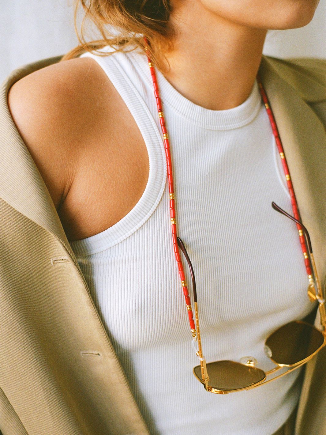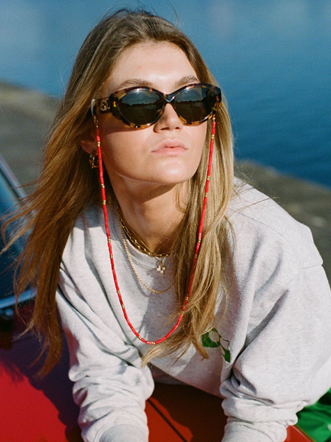 We’re big fans of gemstones, which is why they’re a signature element in our designs. Our Red Coral Sunnycord® is crafted from coral gemstones, adding a bold yet elegant touch. It pairs beautifully with sunglasses and beachwear but looks just as stunning with everyday glasses. Coral gemstones are believed to promote diplomacy, calm emotions, and bring inner peace. Do you love a pop of red?