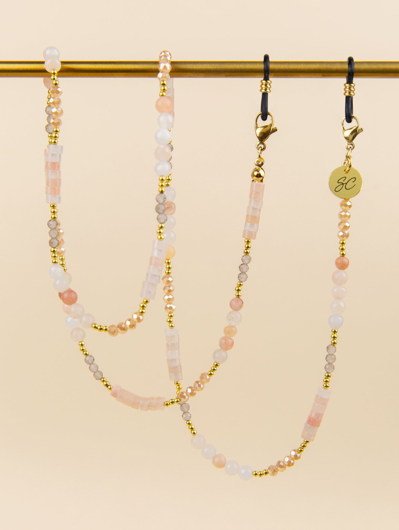 Perfect glasses strap gift for you and your bestie! The Sol Sunny Cord is designed in a blue, green or beige color and is designed with different shapes. Monochrome does not have to be monotone with this one. Choose your favourite color and make a statement by wearing the Sol. Can be worn not only as a sunglass chain but also as a bracelet or necklace.