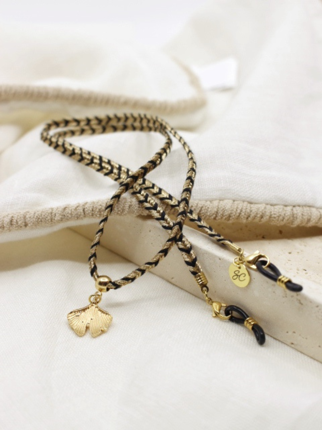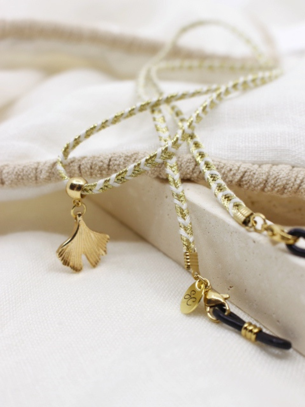 Discover the trendy glasses strap called Gynco, a unique, white-gold or black-gold colored strap with a stunning golden leaf charm. The Gynco Sunny Cord is carefully made using materials of the highest quality. The golden leaf is the perfect addition to the minimalistic classy design. Are you going to steal the show with the Gynco?