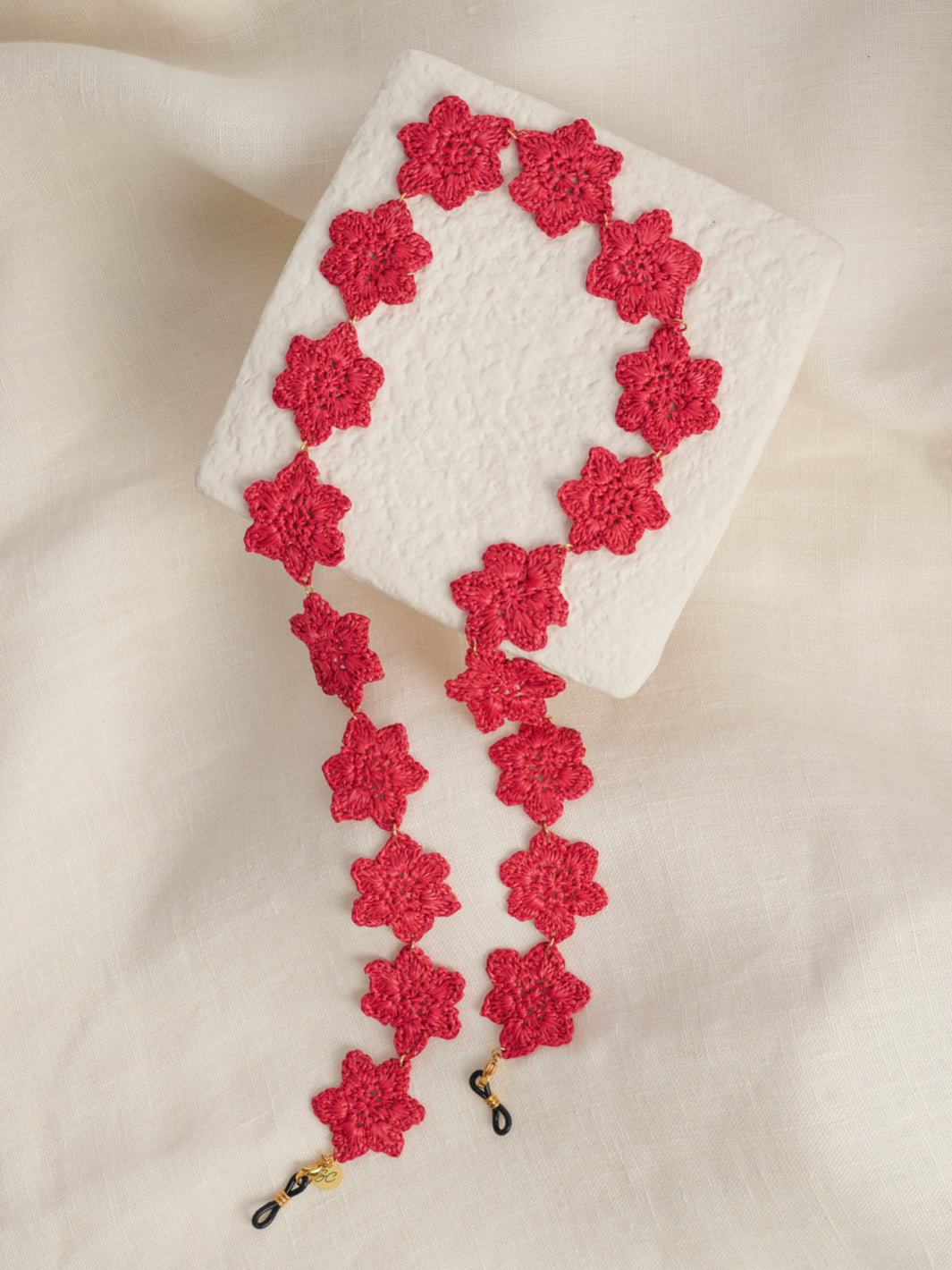 This glasses strap has been handmade with lots of care, love and precision. The flowers have all been separately made and laced together to create a gorgeous ensemble. The material is soft and bright, so that it can hang around your neck comfortably without any disturbance when wearing it on your glasses. The flowers don’t just give a stunning look, but also offer strength to hold your glasses.