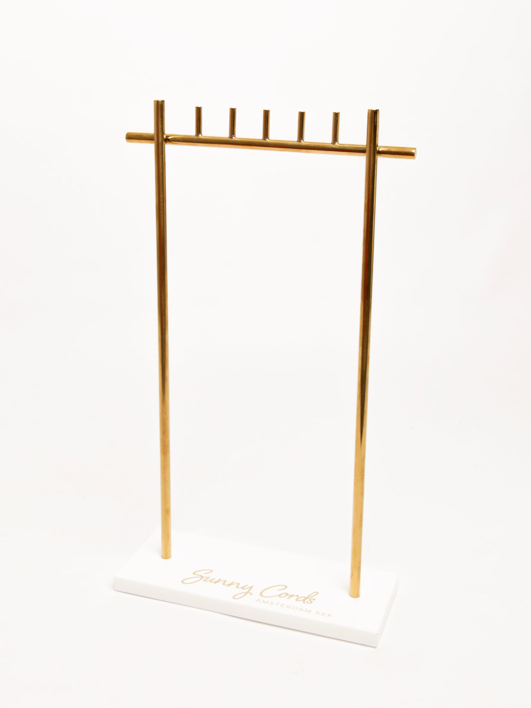This display stand is sophisticated in design and made from gold metal and with a marble stone base. There is plenty of height to hang and store your sunglasses chains. It is super sturdy and gives your Sunny Cords the extra touch to be sold.